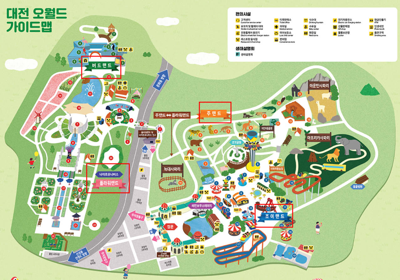 | 주랜드(동물사) | 9:30 ~ 17:40 | 9:30 ~ 21:40 |