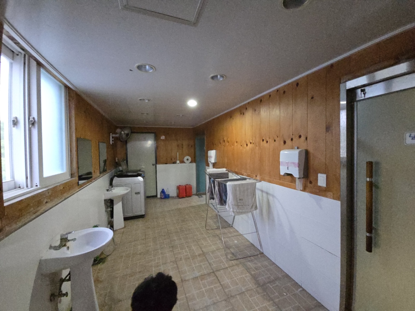 교실 안에서는 취사는 금지되어 있어요. 복도 끝에 화장실, 샤워실이 있어요.
