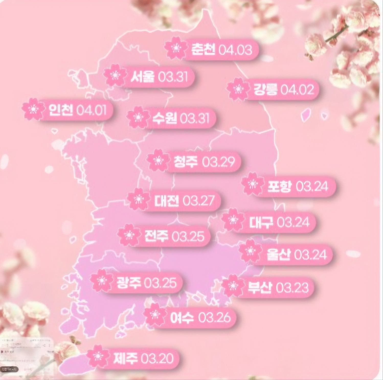 [2025년 주요 지역 벚꽃 개화 예상일]