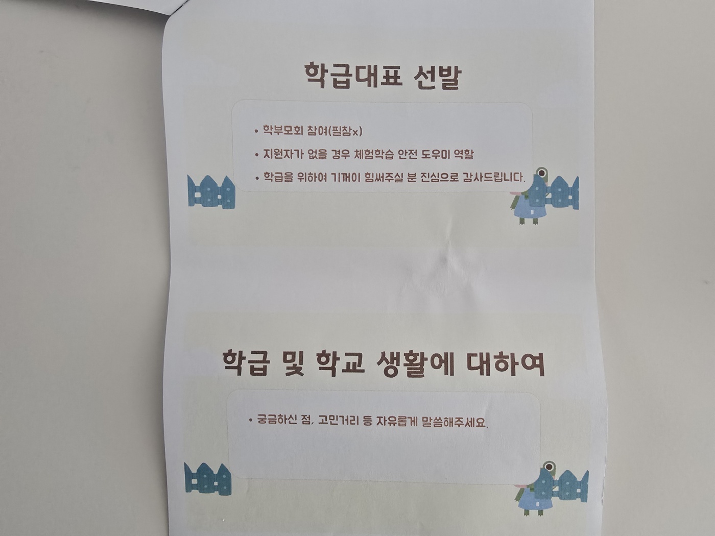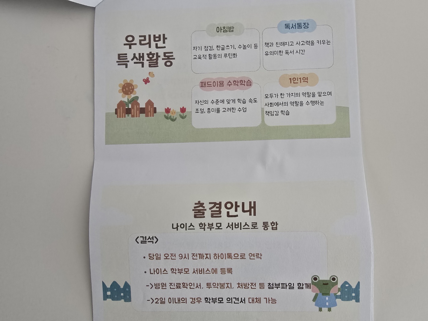 다행히 담임선생님께서 학급의 특색 활동과 교실에서의 역할 등에 대해 설명해 주셔서 많은 정보를 얻을 수 있었어요.