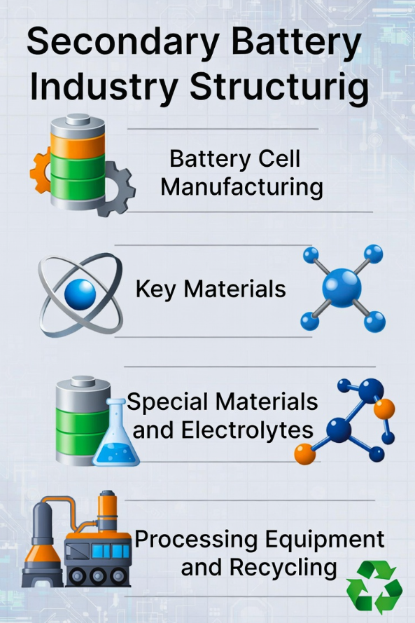 이차전지 산업은 크게 아래 4단계로 나눌 수 있습니다.