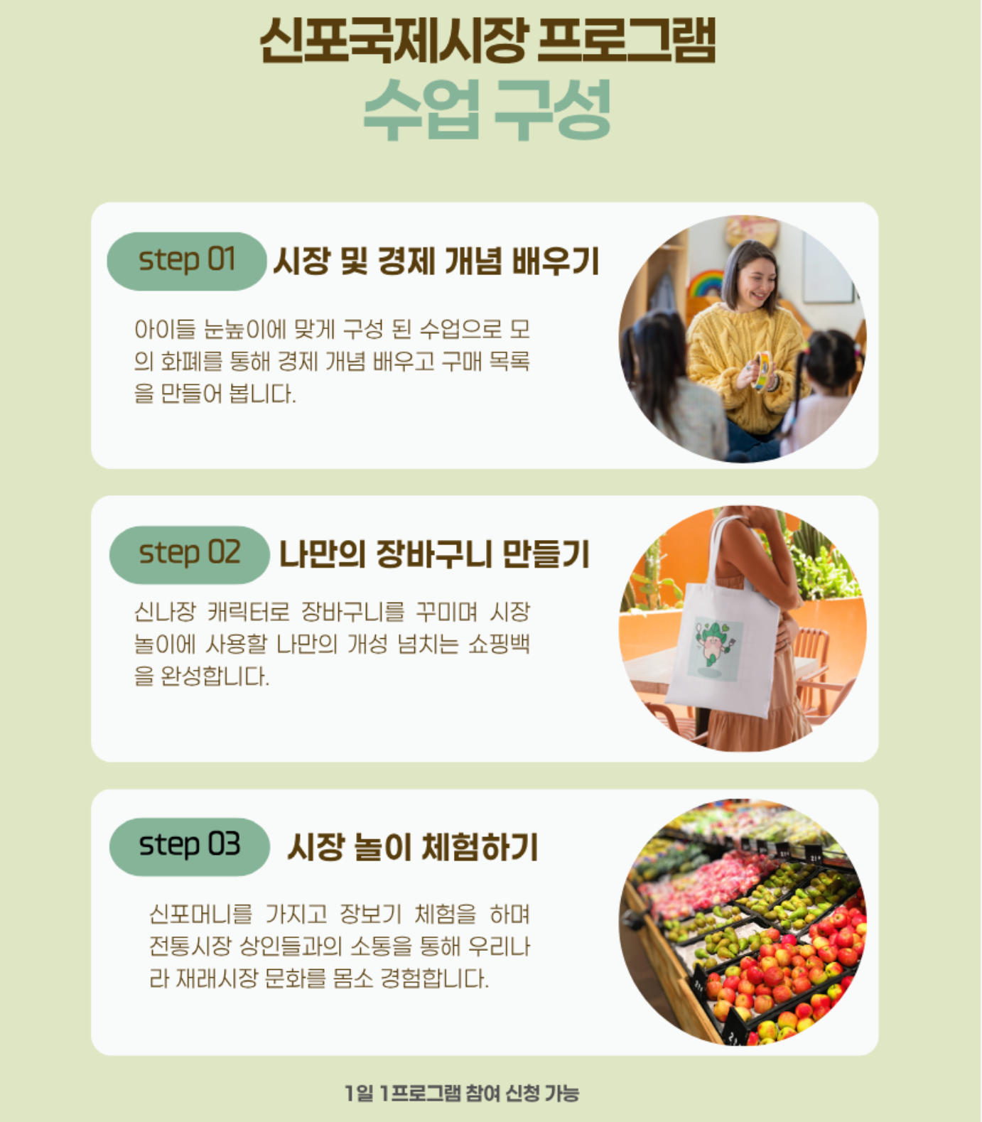 시장경제 교육 → 장바구니 제작 → 실제 장보기