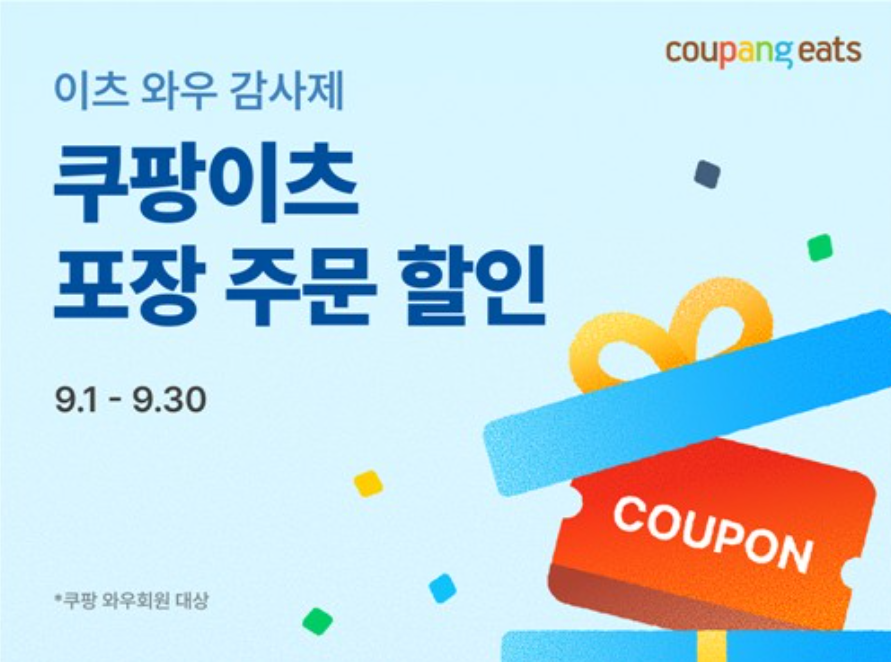 요즘 배달이나 포장 주문 자주 하시나요? 🍗🍕🥐 쿠팡이츠가 쿠팡 와우 회원을 위해 9월 한 달간 특별 이벤트 ‘이츠 와우 감사제’를 진행한다고 해요. 이번 행사에서는 배달·포장 주문 모두에서 다양한 할인 혜택을 받을 수 있고, 사장님들도 중개 수수료 부담 없이 매출을 올릴 수 있다고 하니 서로에게 좋은 기회예요.