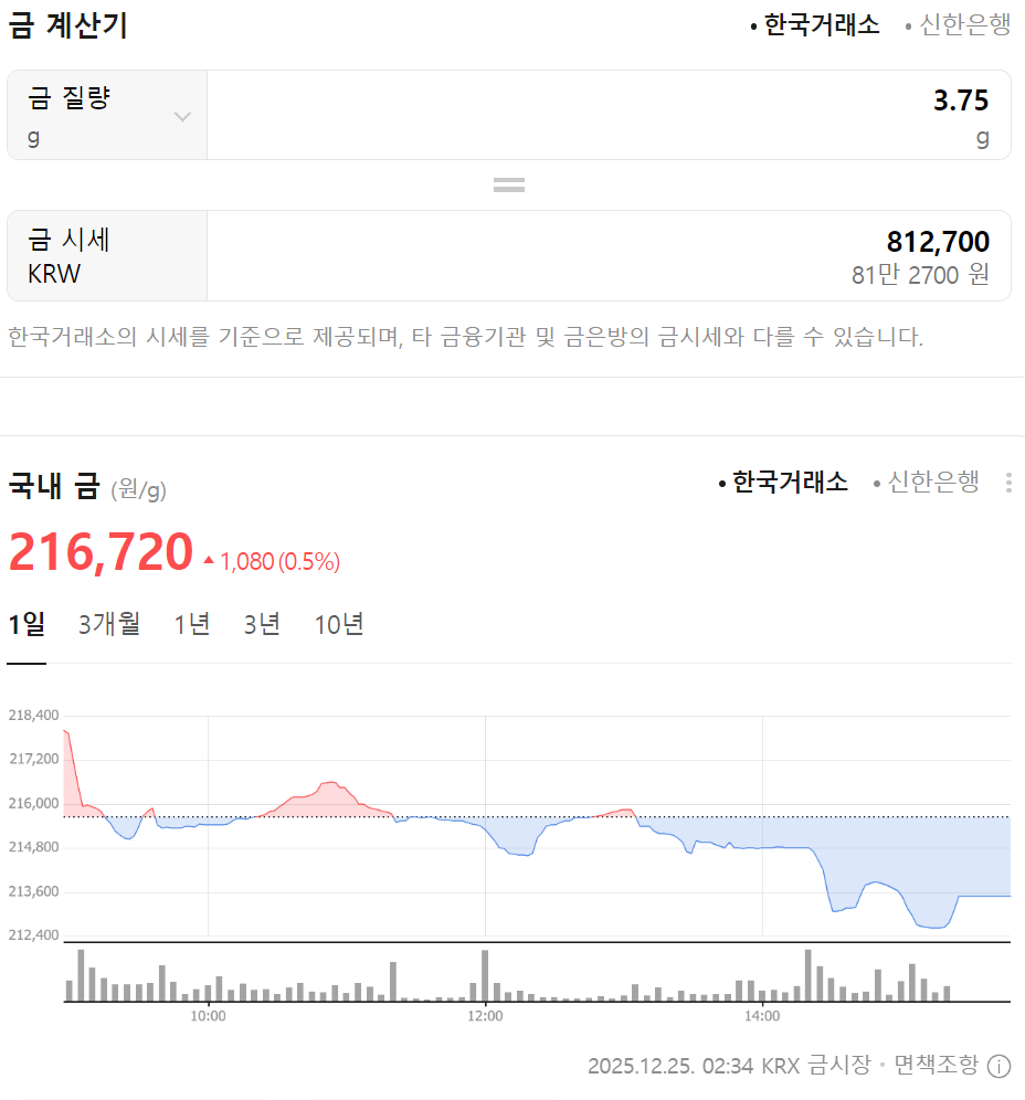 1. 국내 금값 시세 (한국금거래소 기준 2025.12. 24)
